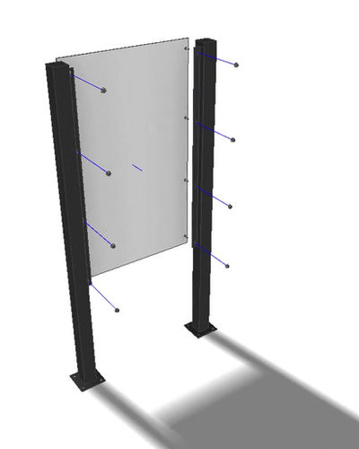 Double-pedestal mounts can display larger panels and are angled for comfortable viewing. The panel attaches to the post with studs welded directly to the panel, allowing for easy installation.